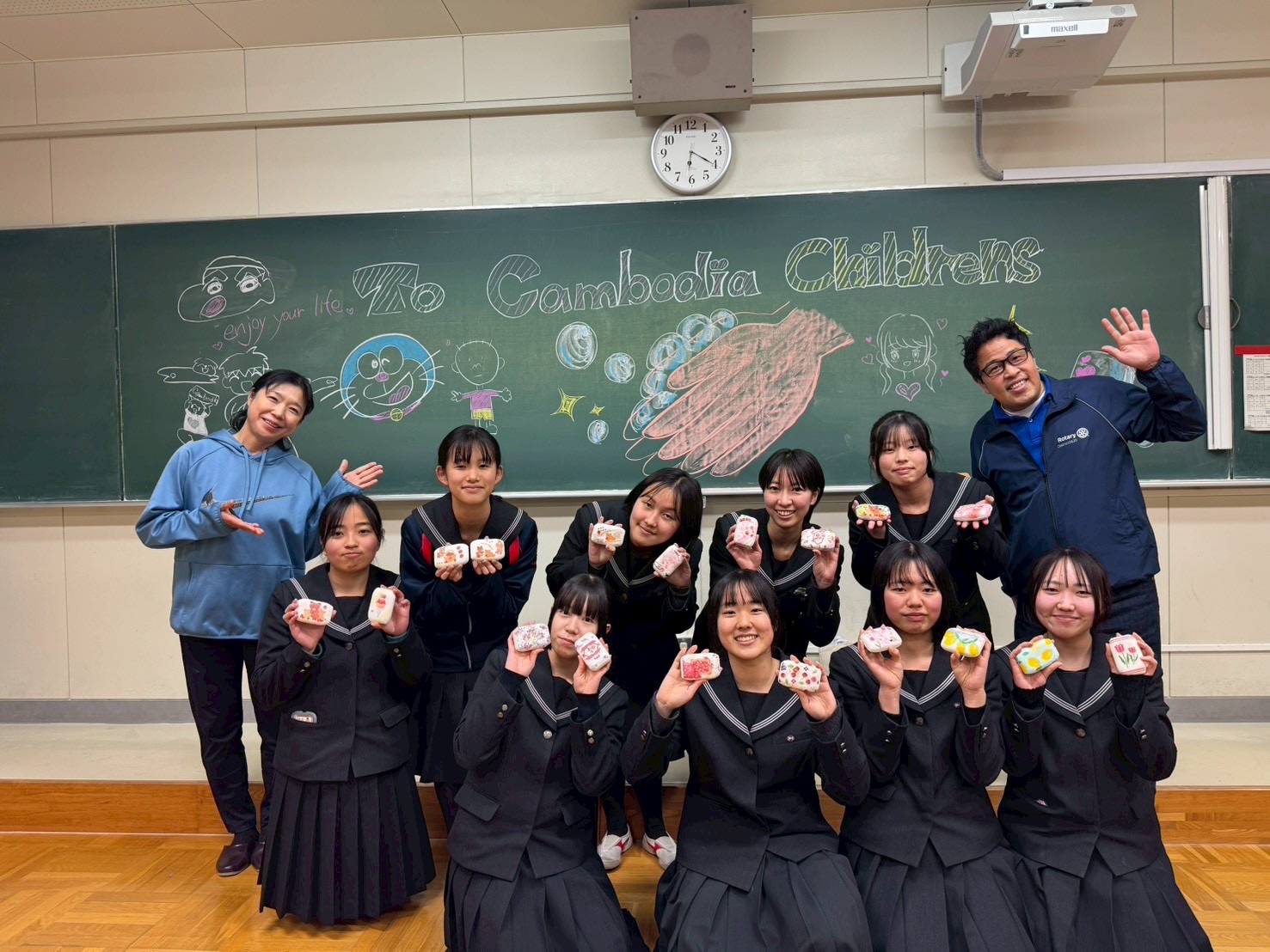 さらに、石鹸づくりを通じて支援してくれた日本大学の学生とリエンポン村の小学生が実際に対面し、言葉や文化の違いを越えて心を通わせる貴重な時間となりました。自分たちの想いが形となって届いていたこと、そしてその相手と直接つながることができた喜びは、参加者一人ひとりの心に深く刻まれました。