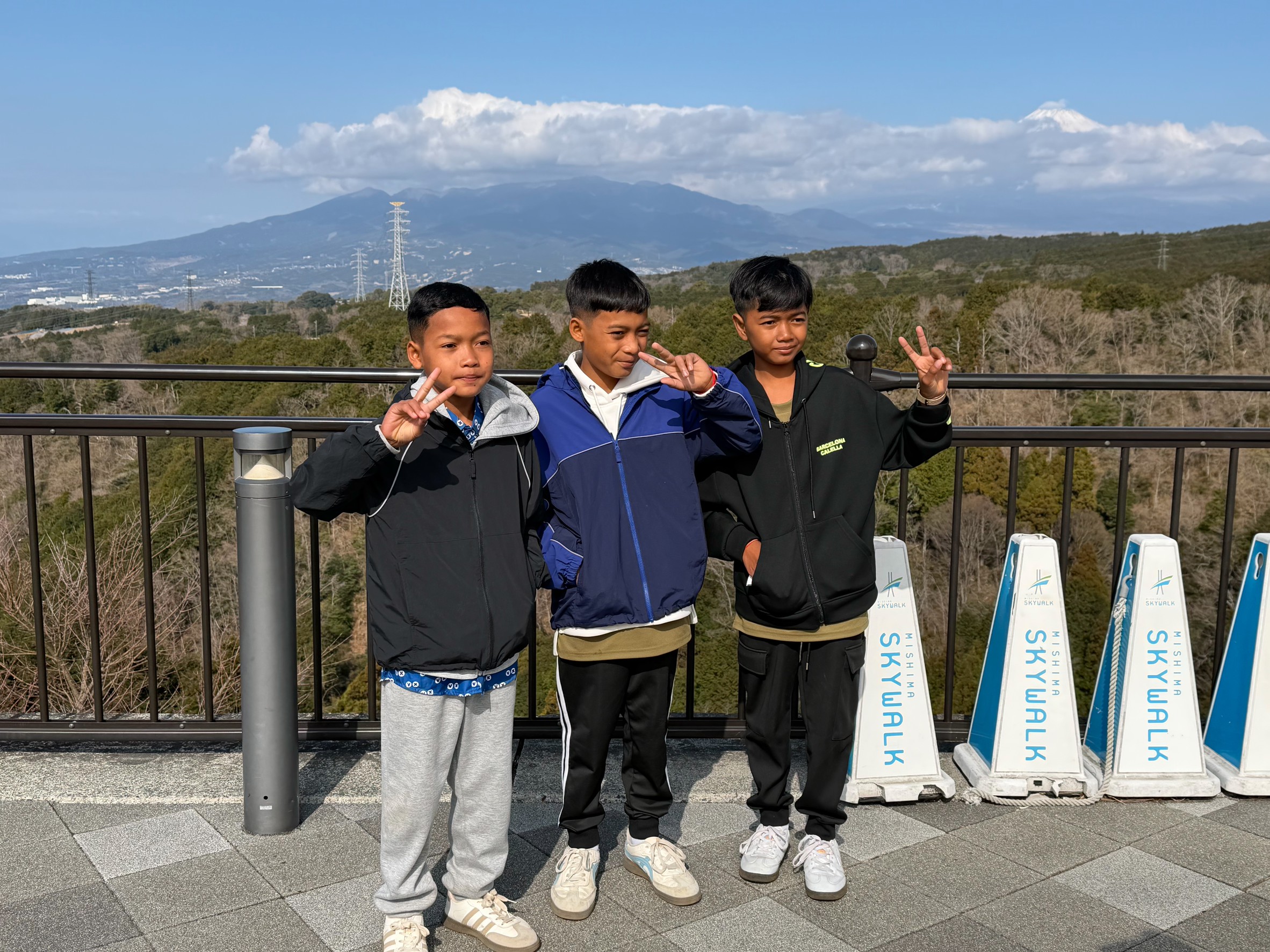 子どもたちは、三島スカイウォークで吊橋の空中散歩やジップスライドを体験し、笑顔あふれる時間を過ごしながら、日本の自然と文化に触れました。